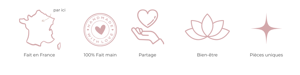 Réalisées entièrement à la main au sein de mon atelier en région parisienne, mes créations sont un gage d’authenticité et sont porteuses de sens.